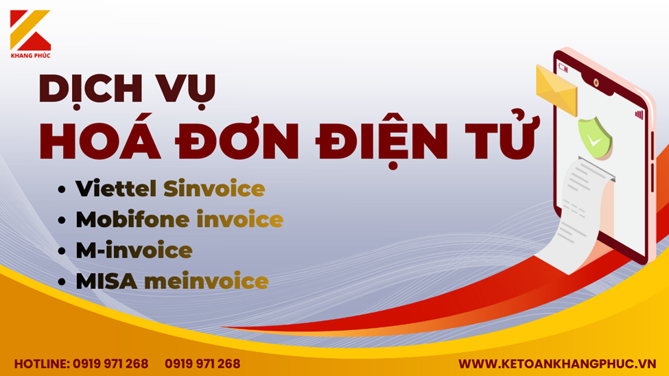 Dịch vụ hóa đơn điện tử trọn gói tại Đại lý thuế Khang Phúc là đại lý chính thức của Viettel, Mobifone, M-Invoice, MISA và các nhà cung cấp giải pháp hóa đơn điện tử, chữ ký số, phần mềm kế toán khác. Khách hàng là doanh nghiệp, hộ kinh doanh và cá nhân kinh doanh khi sử dụng dịch vụ kế toán thuế tại Đại lý thuế Khang Phúc sẽ được tư vấn pháp lý rõ ràng, hỗ trợ đăng ký và phát hành hóa đơn điện tử, cài đặt, kết nối chữ ký số, tích hợp máy tính tiền, tư vấn về việc xuất hóa đơn hợp pháp.